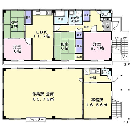 工場・作業場・倉庫兼住宅のご紹介です。敷地は49坪、建物は52坪超。大型のシャッター・クレーン付きで作業効率も高まります。駐車場は2台付。トラックも可。耐久性も安心の鉄骨造です。ぜひご内覧ください。